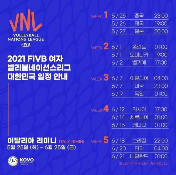 "2021 VNL 발리볼네이션스리그 일정부터 중계, 여자배구 대표팀 명단까지"