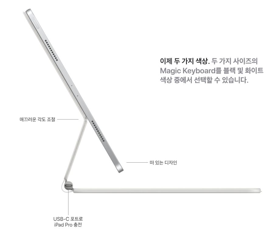 이 외에 아이패드 프로 5세대 악세사리 호환성에 관련하여서 궁금증이 많은 것으로 알고 있습니다. 먼저 아이패드 프로 5세대는 애플펜슬 2세대를 그대로 사용하고 키보드는 기존의 매직 키보드를 그대로 사용할 수 있다고 합니다. 단, 키보드의 경우 두께가 약간 두꺼워졌기 때문에 사용 시 조금은 빡빡한 느낌이 있을 수 있습니다.