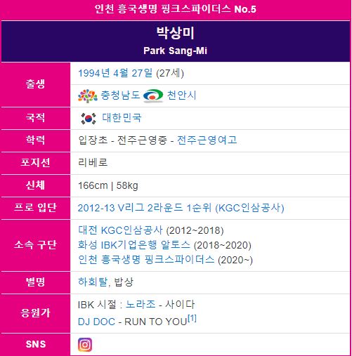 박상미 배구선수는 리베로라는 특수한 포지션으로 활동하고 있으며, FA 결과 인천 흥국생명 핑크스파이더스 프로배구단에 잔류를 선택하게 되면서 2021-2022 V리그 시즌 동안에도 흥국생명의 유니폼을 입고 활동할 수 있게 되었습니다.