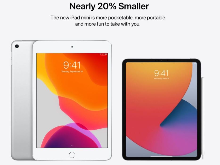 새로운 폼펙터 디자인이 적용된 아이패드 미니 6세대의 디스플레이 사이즈는 약 8.5인치로 예상되고 있습니다. 현재 애플 공식 홈페이지에서 판매중인 아이패드 미니 5세대의 디스플레이 사이즈는 7.9인치로 약 0.6인치 정도의 디스플레이 사이즈가 증가할 것입니다.