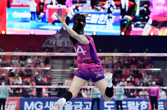 지난 2022년 1월 23일 일요일에 개최된 2021-22 V리그 올스타전 중 스파이크 서브 퀸 콘테스트에서 새로운 바람이 불었습니다. 현대건설 황민경, 도로공사 박정아, GS칼텍스 모마, 인삼공사 이소영, 흥국생명 정윤주, 기업은행 김희진, 페퍼저축은행 이한비까지 7명의 배구선수가 출전하였습니다.